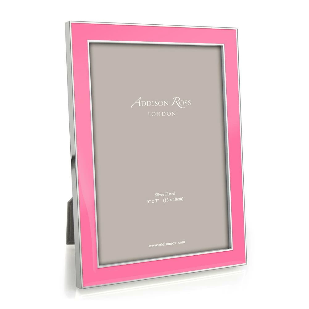 Add a pop of color with this bright pink frame. Made of enamel and silver plate.