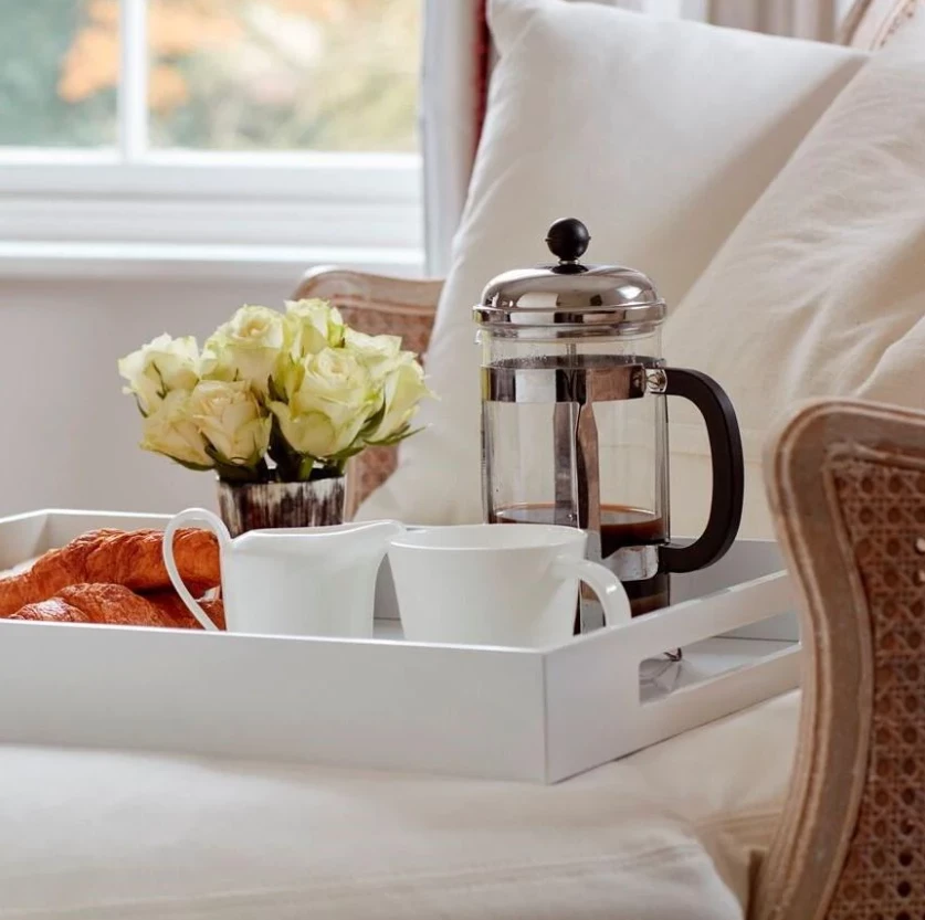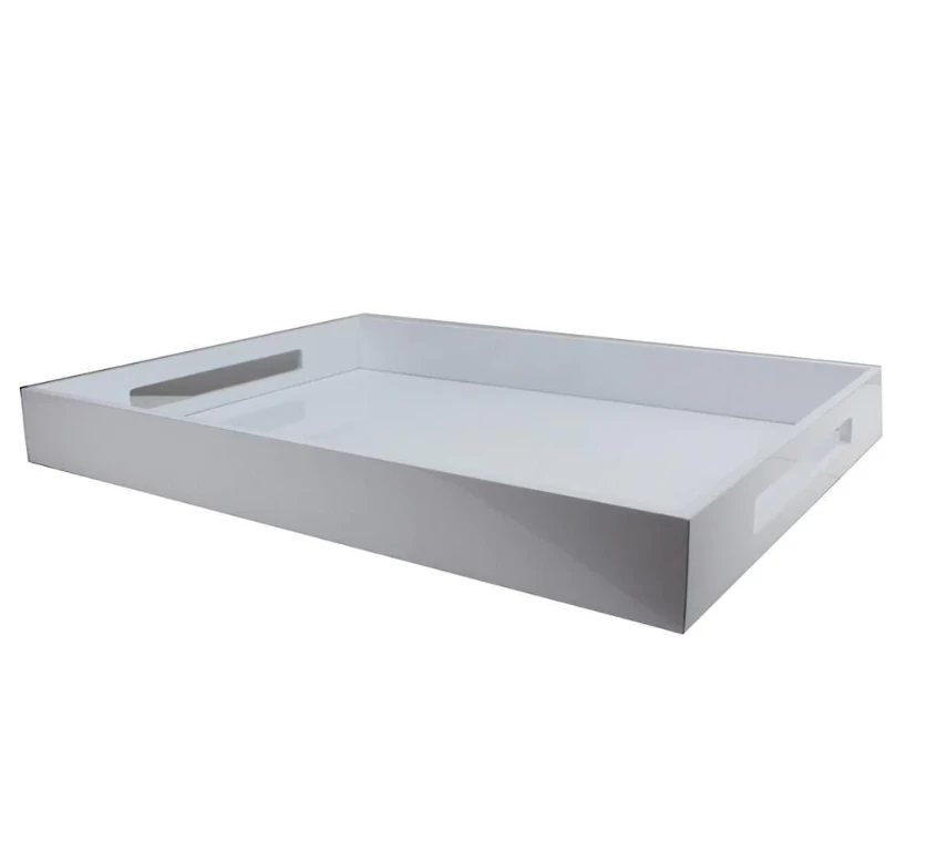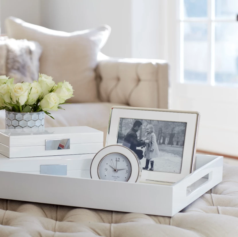 Our Lacquered White Tray features 20 coats of high gloss lacquer, hand-polished between each coat, the base is covered in soft black velvet with our foil blocked logo.