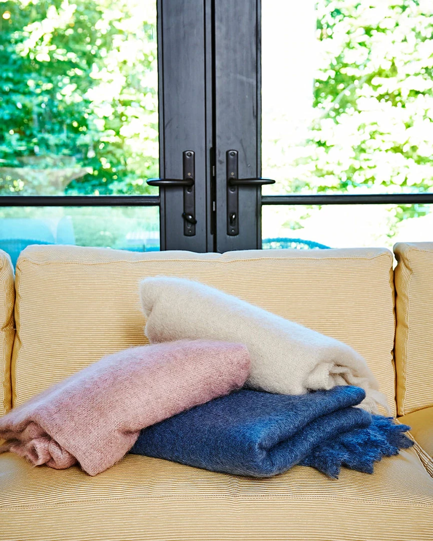 These extremely soft throws are made of the finest mohair/wool blend and are woven and carefully brushed, delivering a final and purely luxurious finish.