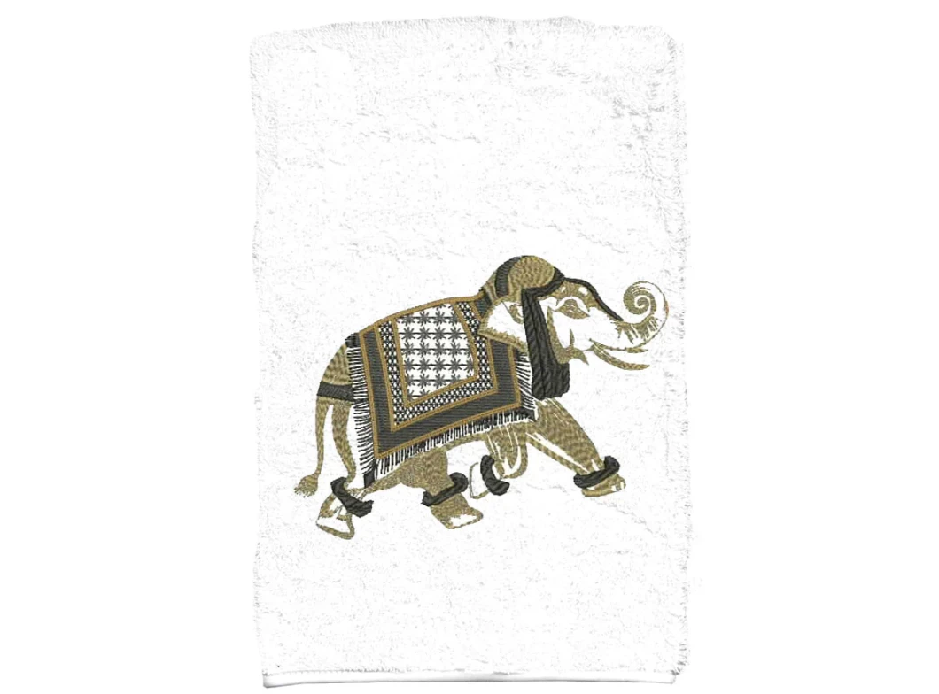 These beautiful elephants parade along on 100% Italian Roma terry guest towels.