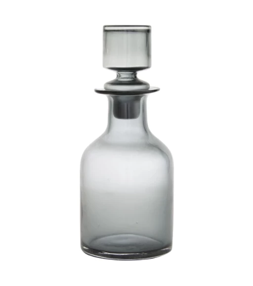 This striking smoke glass decanter with stopper will add chic to your table. Use on your bar in combination with your own vintage decanters or put one in each bathroom to hold mouthwash. A great gift when filled with a homemade infused liquor.