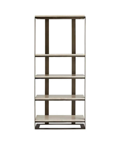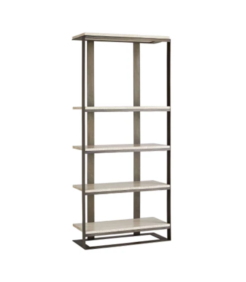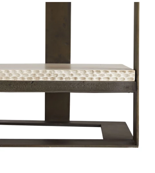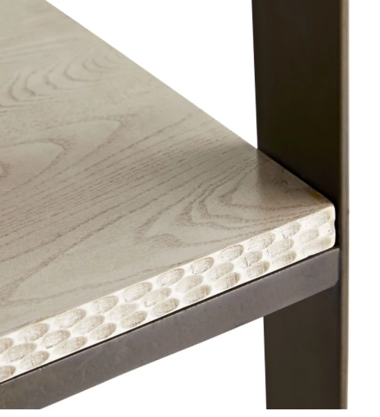 The Herrick presents a functional foundation to fill with books, collectibles, photos and more. Blackened iron offers a bold contrast to the solid smoke oak shelves that fit seamlessly into its frame, delivering an industrial-inspired style. Each of the four shelves provides ample space for items to store or showcase. Its versatile style and function make this successful in virtually any setting. Finish will vary.