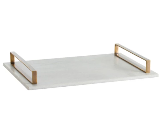 This exquisite white polished marble tray is decorated with antique brass rail handles. A perfect solution to serving drinks or food.