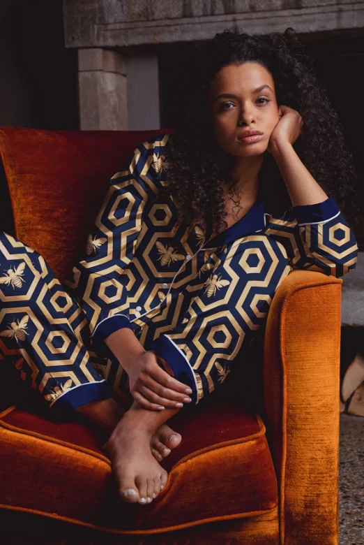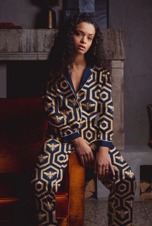 Our classic long two-piece set with contrast piping.