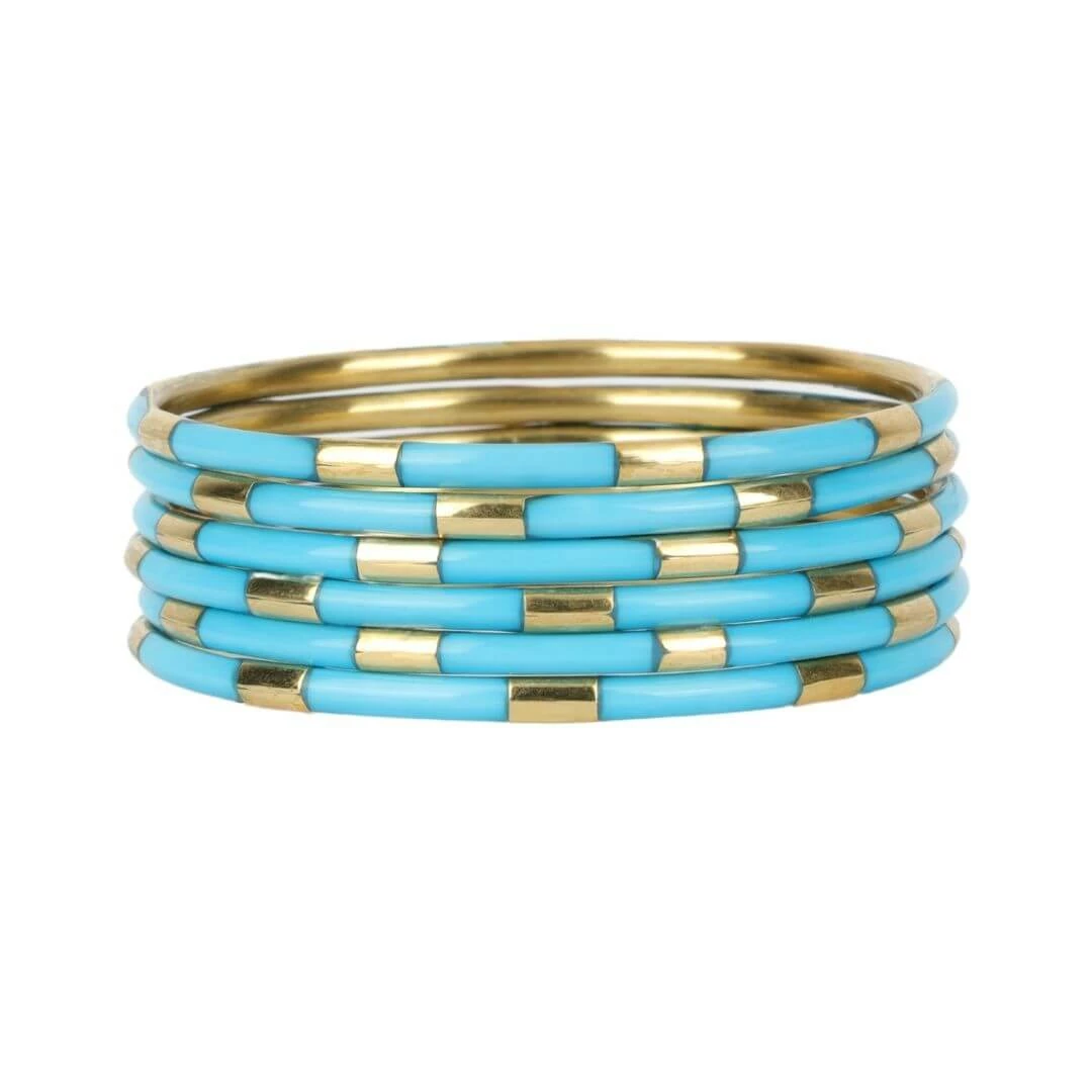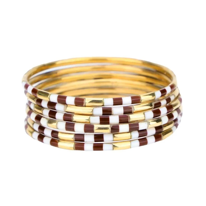 The allure of enamel is captured in our delicate set of six Veda bracelets. Available in great varity of colors. Combined with white and gold enamel for a modern must-have bracelet set, or stack them with an AWB of your choice. Vedas are ancient Hindu texts containing wisdom delivered to priests via hymns, philosophy, and other rituals.