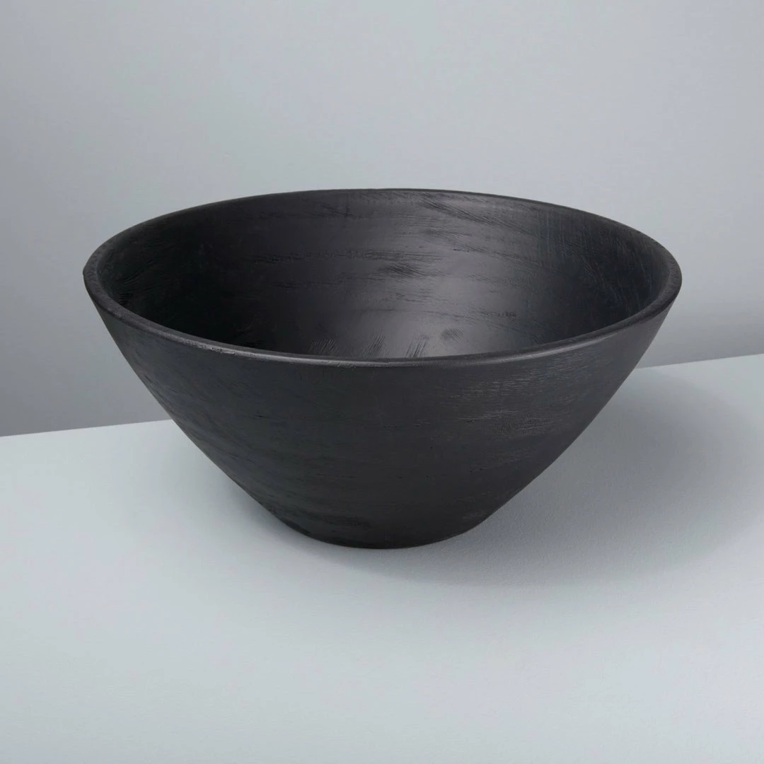 With this Black Mango Wood bowl, a bit of contrast goes a long way making it a bold addition to any meal. Handcrafted from protected groves in India, this dreamy bowl boasts a darkened color palette, beautifully accenting its natural striations and subtle highlights.