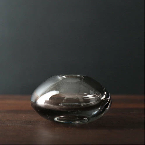 Add the small touches that make a room your own. Short and sweet, this low-slung round bud vase in smoke grey is ideal for larger blooms like gerbera daisies and mums, or a cluster of smaller flowers with gleaming glass bud vases in rich, luscious tones of amethyst, smoke and clear. Substantial in weight, and featuring a smooth surface, the gem of a piece was designed to catch the light and add a decorative glow. A lovely addition to any home. Perfect gifts, beautifully packaged and wonderfully priced.