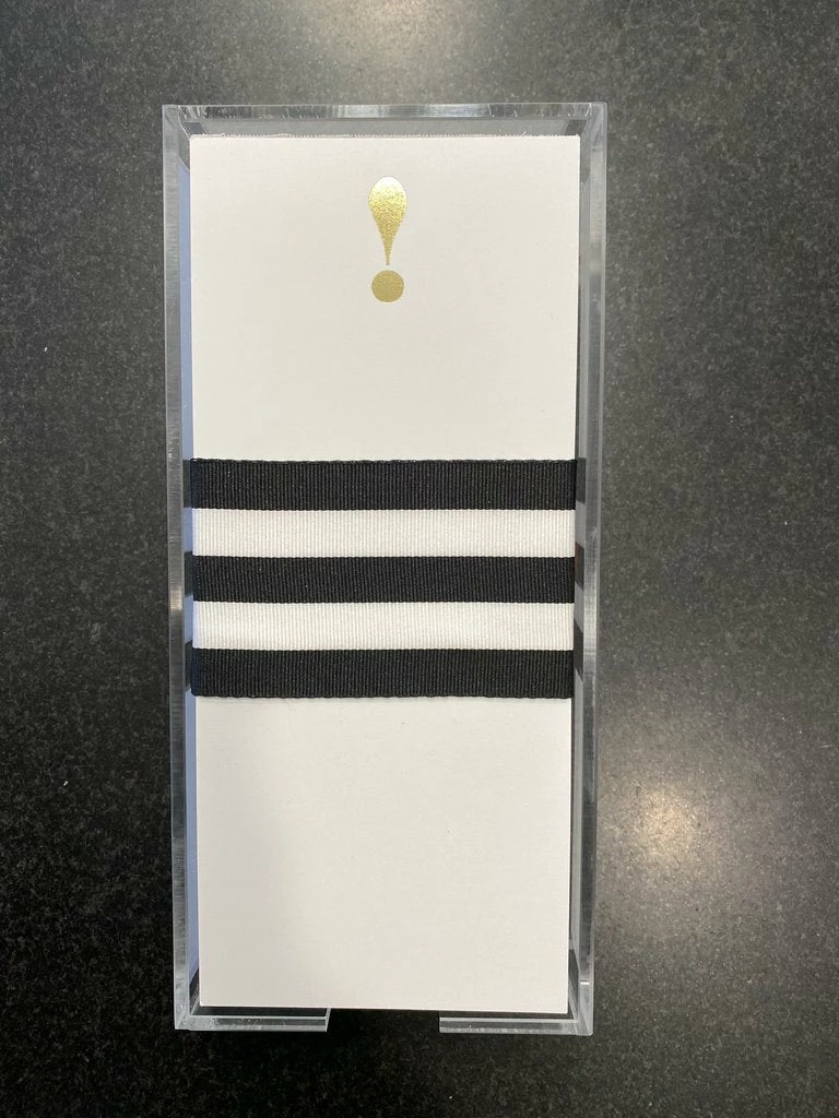 Make your point in style with our 4×9.25 Gold Foil “!” notepads. They feature 160 sheets of luxurious, smooth white cardstock printed with an elegant gold foil icon. Express yourself! Leave a note that is guaranteed to get attention, or make this pad your new go-to gift!