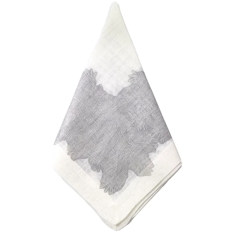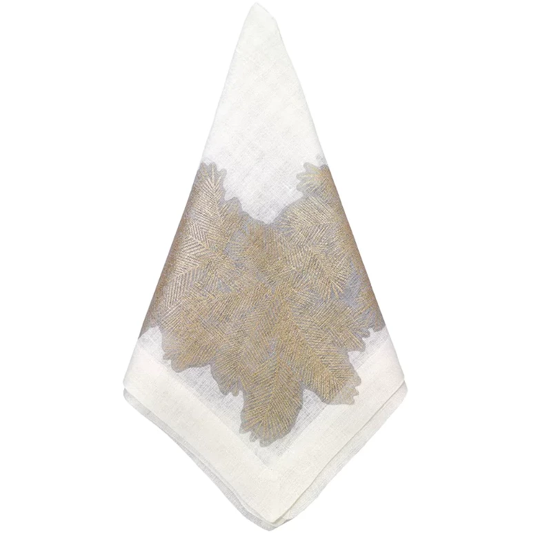 This metallic print napkin is spectacular. The spruce around the edge of the napkin is great for the holiday season or any special dinner.