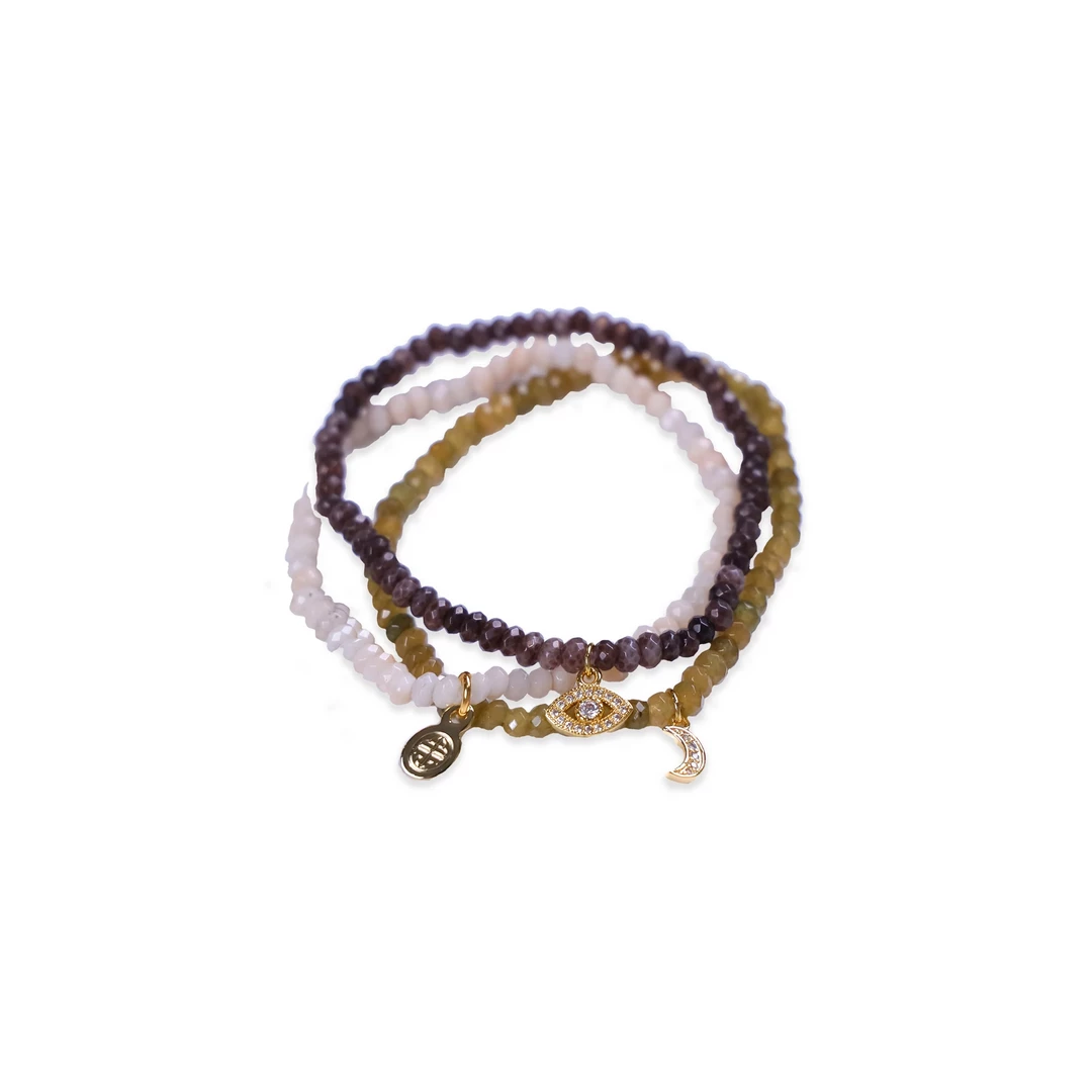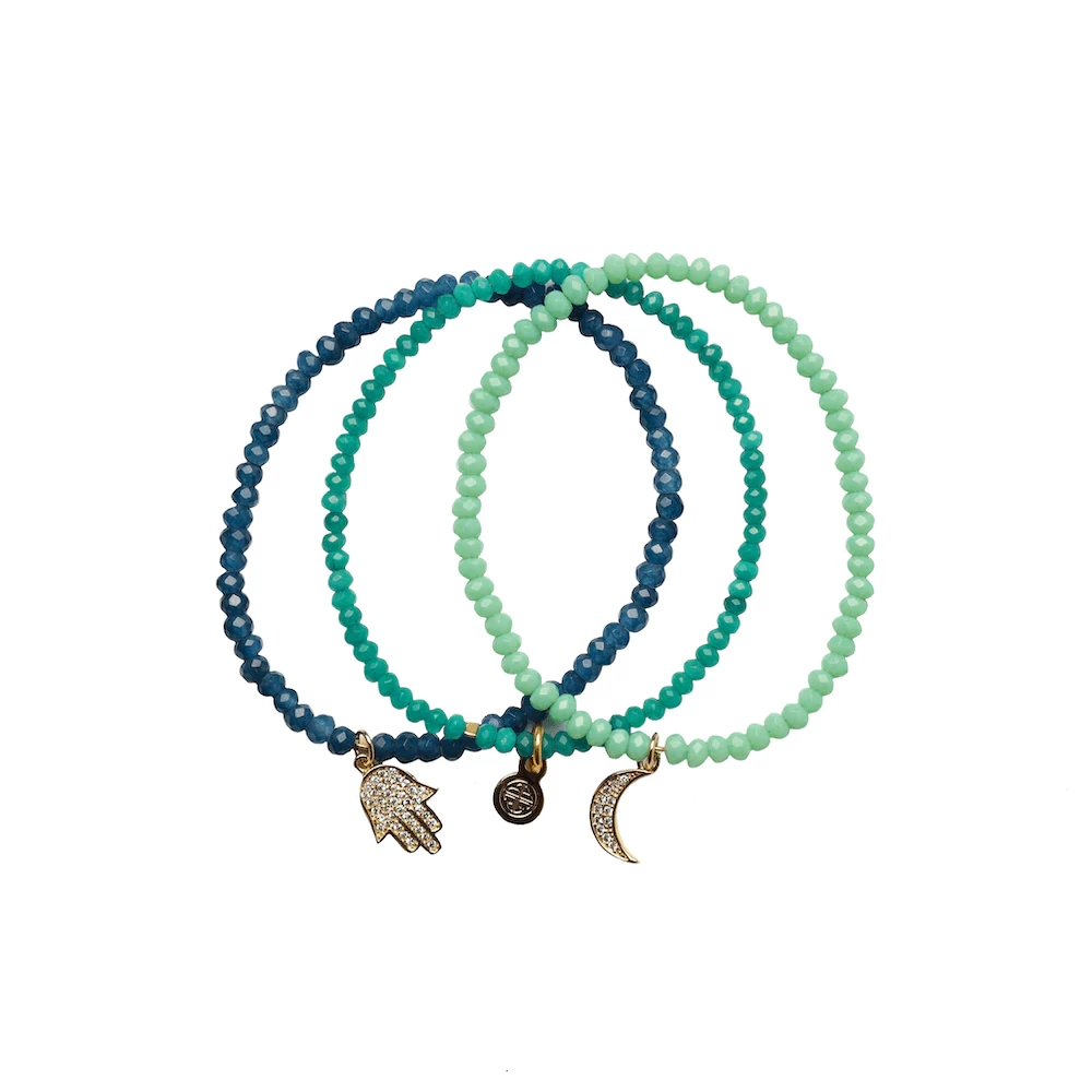 Mindful Glamour Ritual: Pause. Breathe. Pick a mantra for your day and repeat it six times as you slip on each Veda bracelet. Then…Go. Be it.