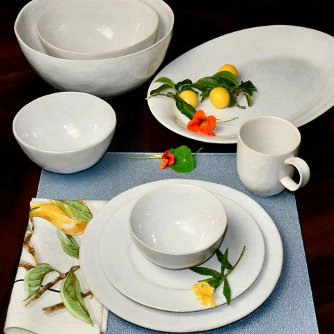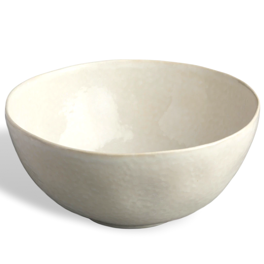 Cozina serving pieces have that “fit anywhere” look to complement any decor. This generously sized bowl can be the focal point in the kitchen, on the table or in the living room. Our custom white, softly sponged glaze gives it a casual but elegant look. Easily mixed and matched with other patterns. This large bowl is 10″ in diameter and about 5″ deep.