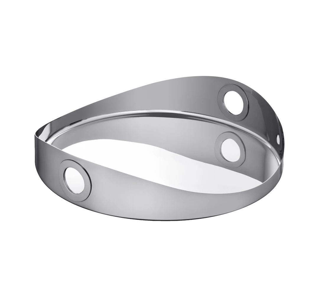 This small round stainless steel presentation/serving tray, with flush holes that act as handles, makes an ideal housewarming, hostess or wedding gift. The hip and modern Oh! collection provides all the essential pieces to throw the perfect cocktail party or celebration.