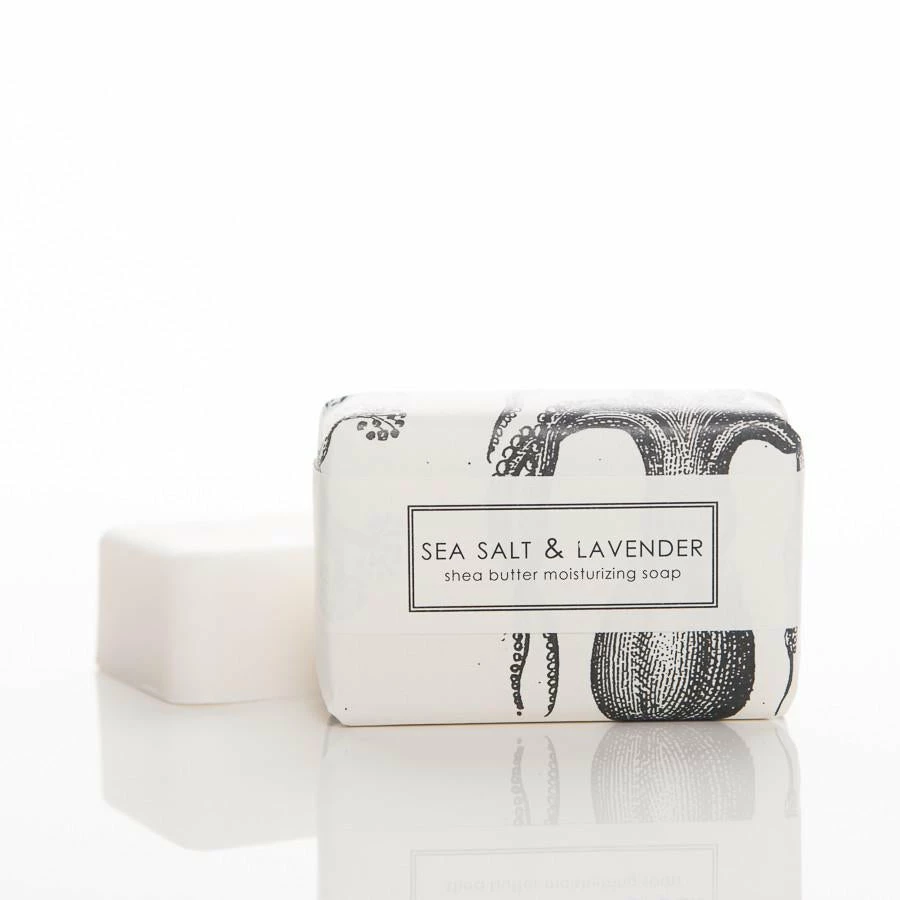 Sea Salt & Lavender shea butter bath bar packaged in a botanical and vintage illustrations.