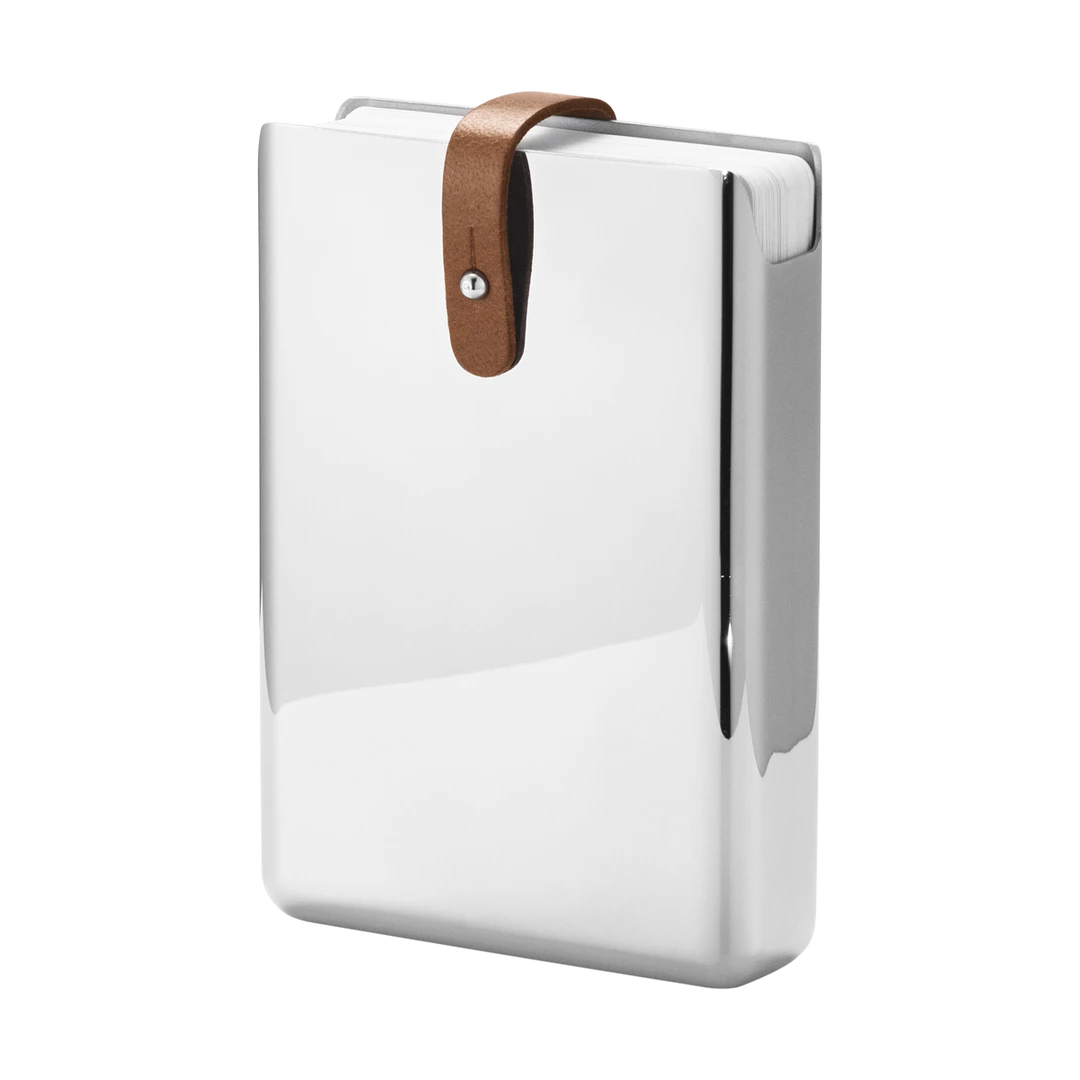 The card case is expertly crafted from stainless steel with a mirror-polished finish and a leather fastening. It contains 52 playing cards with 2 jokers.