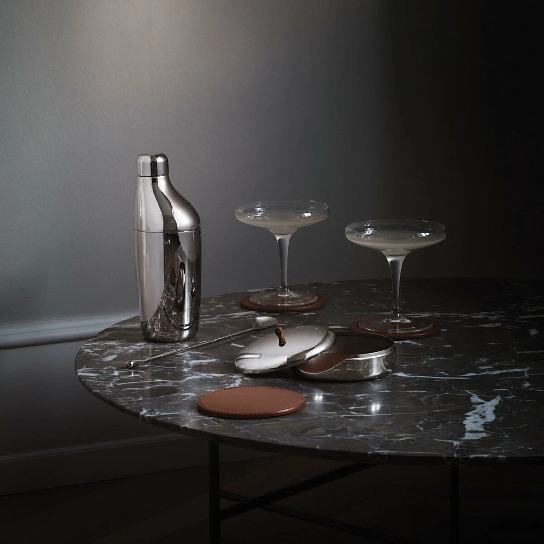 Aurelian Barbry’s ergonomic Sky set of bar and serving accessories encapsulates the combination of form and function that characterises Scandinavian design. Created by the Georg Jensen design team, the coaster set is a stylish addition to this universe.