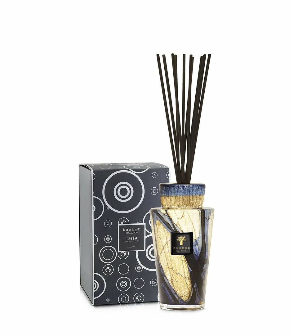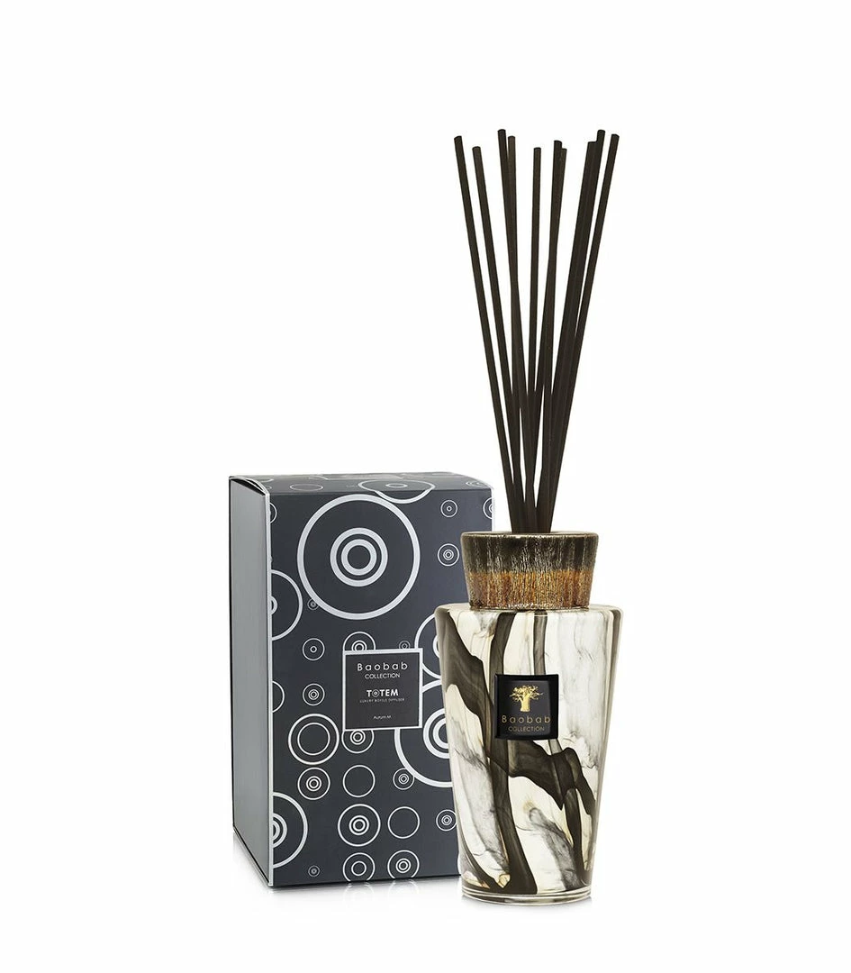 The diffusers are hand-blown by our glass artisans. In reference to the color scheme of precious marble, their ceramic caps are black and silver in accordance with the bottles.