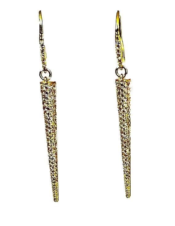 Sparkling 14k gold plated and cubic zirconia skinny drops with 14k gold plated and cubic zirconia wires. 2 1/4”