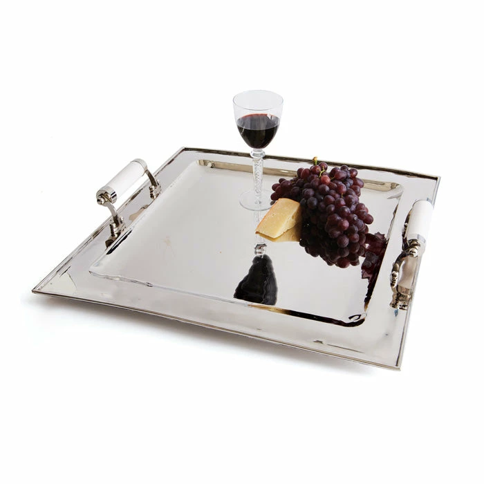 An elegant nickel tray with white bone handles … serve refreshments, tea or your favorite cocktail.