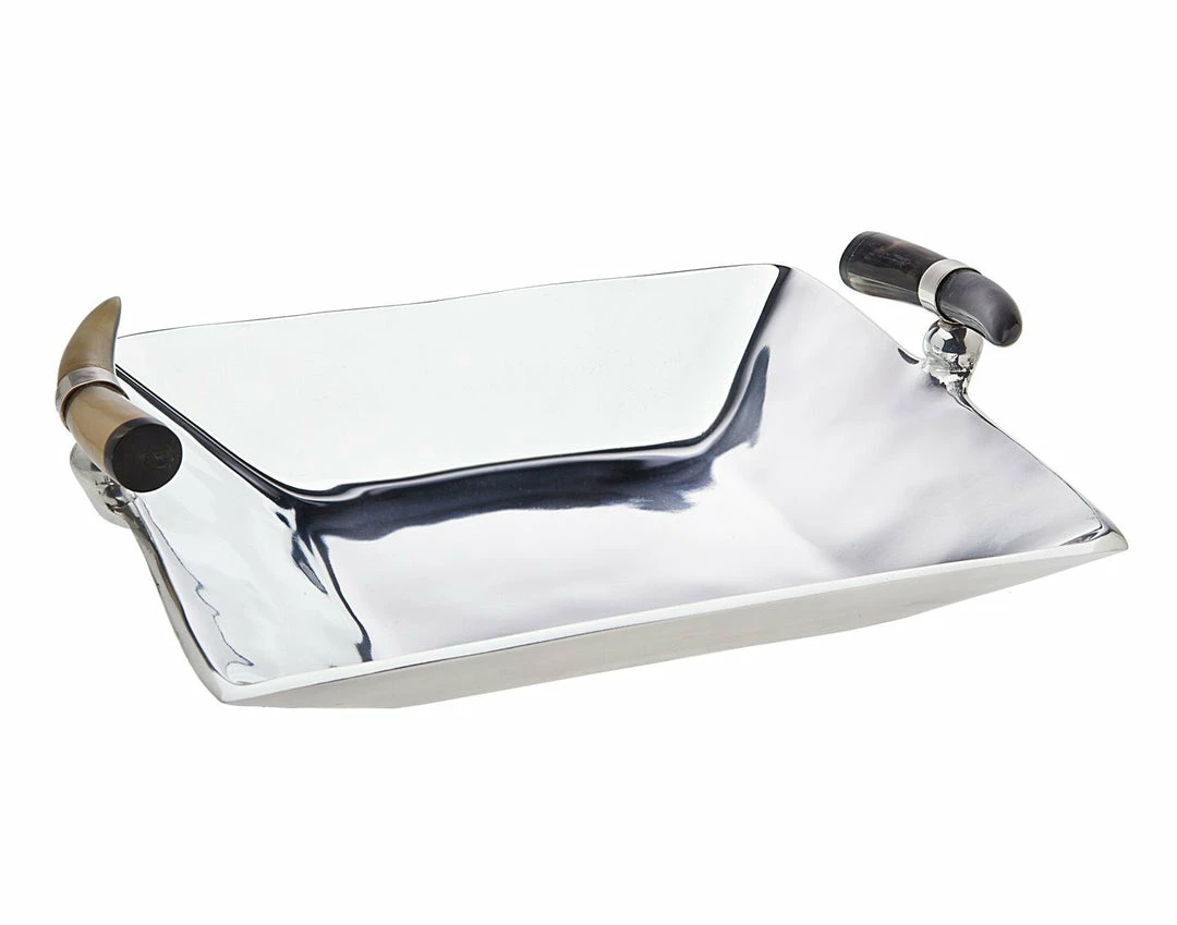 Handmade Square Tray with Natural Black Horn Handles. Rustic look. Perfect for serving cheese, crackers, and hors d’oeuvres. Add a touch of style to your holiday or party table with this classy decorative bowl. Horn handle for convenient serving and unique design.