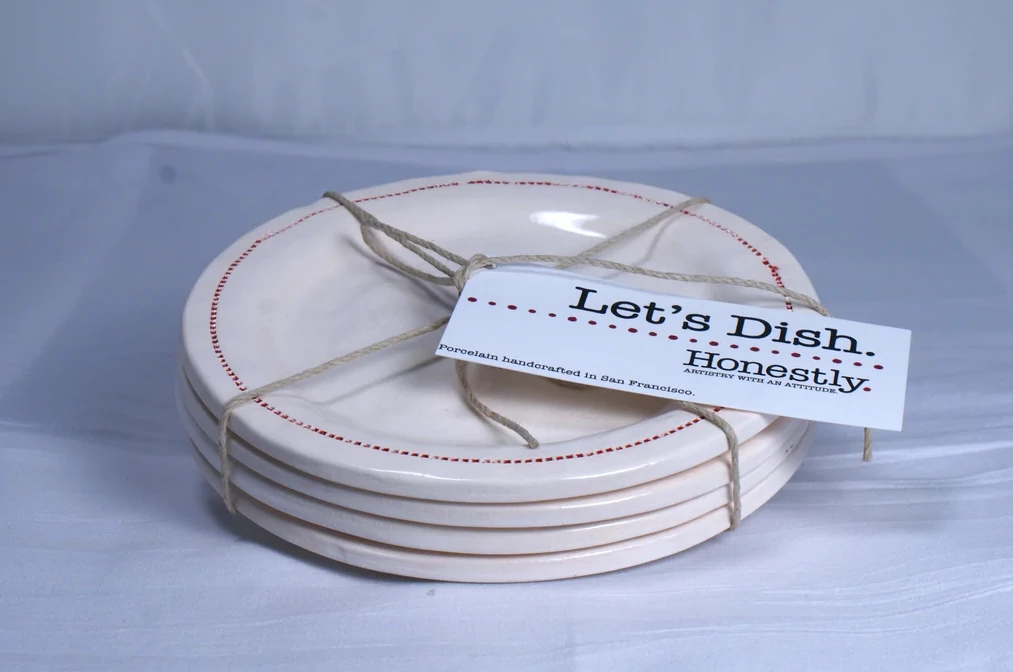 All dishes hand molded and high fired. All letters are hand stamped and inked, with subtle detailing. Graphics are either hand painted, stamped, or durable heat sealed decals. As each piece is handcrafted, some variance in size and shape are to be expected – hence their unique, one of a kind nature.