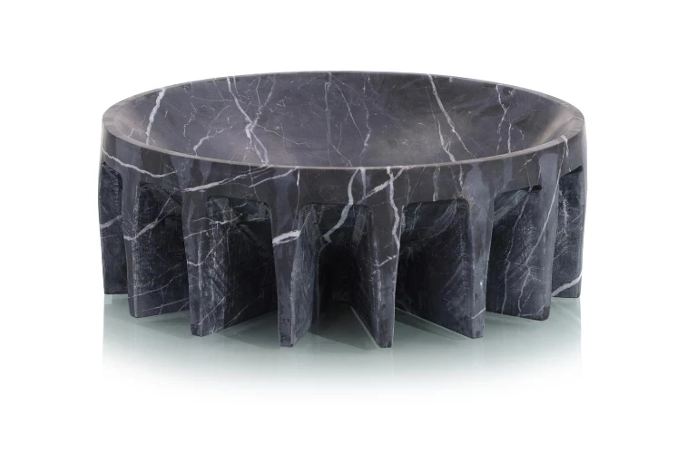 Artisans have hand-carved this marble bowl with an exaggerated scalloped base. The smooth finish of the bowl is a unique feature of this interesting accessory.