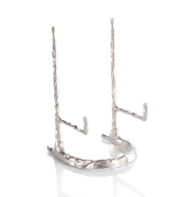 This Giacometti-style, extra-deep plate stand in nickel will make the perfect display for your beautiful chargers.