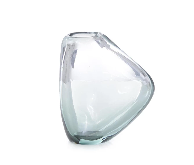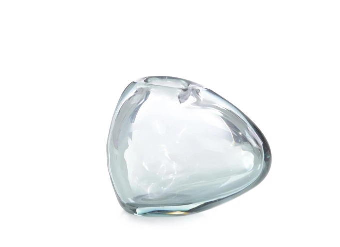 This stunning handblown glass vase in translucent navy blue is one of a kind with its unique, abstract shape.