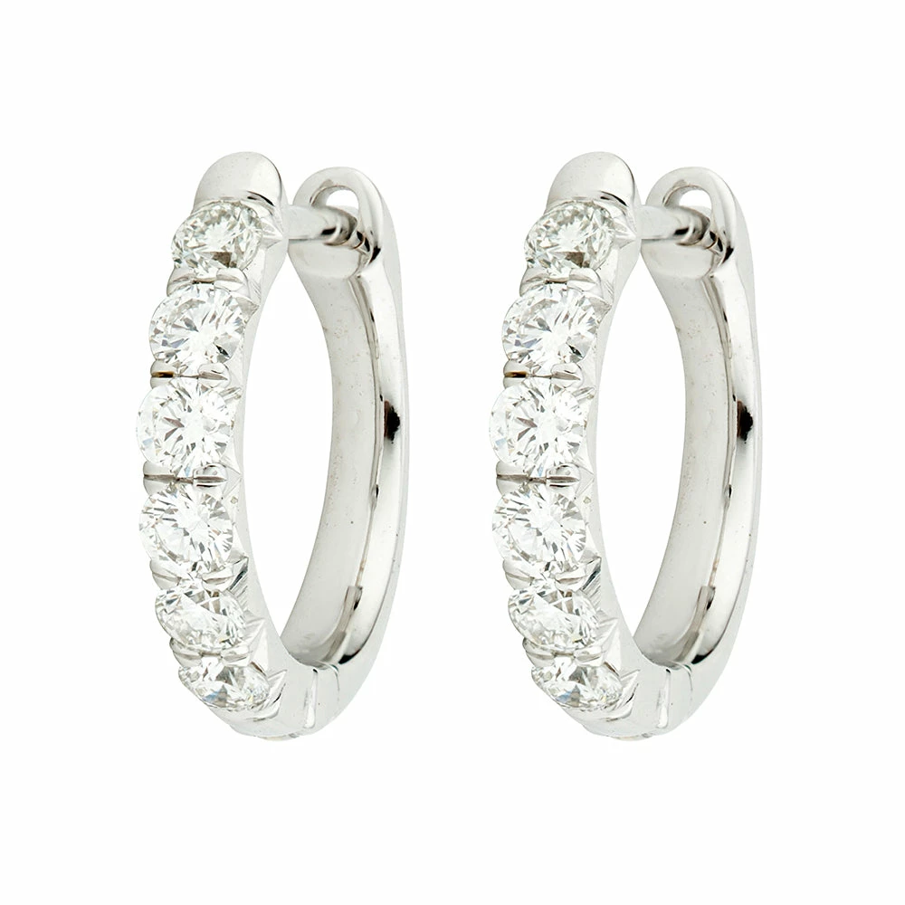 The Jude Diamond Hoop Earrings feature sparkling round diamonds French pave set in 18K gold.