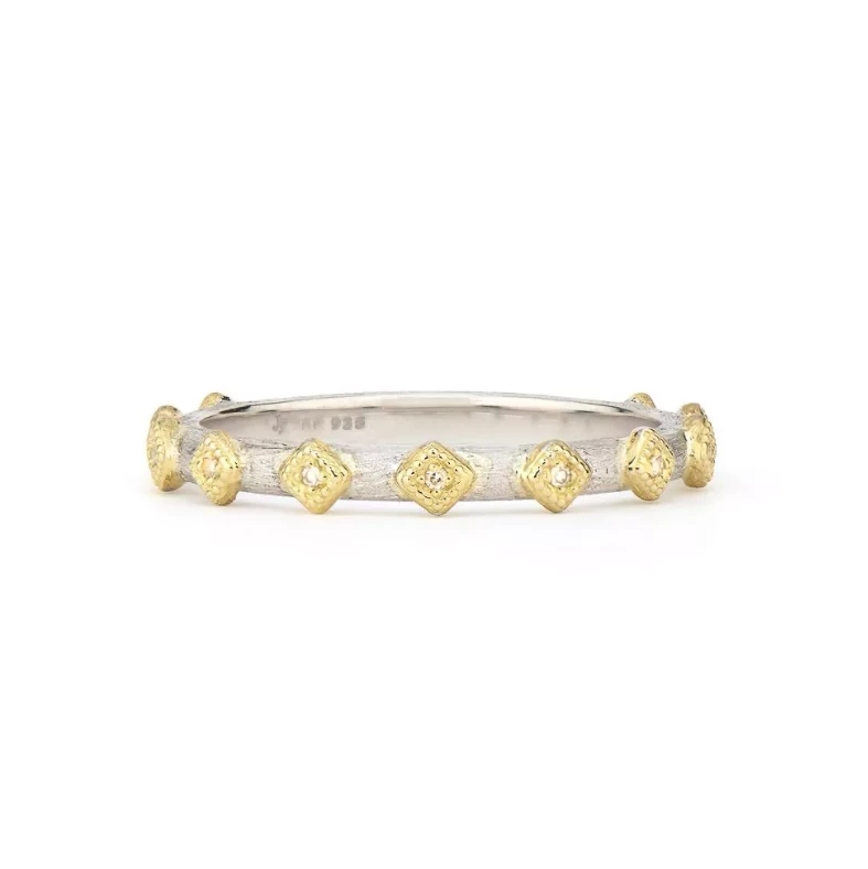 From the Mixed Metal Collection, the Mixed Metal Thin Diamond Kite Stacker Ring features diamond kites set in 18K yellow gold on a sterling silver stacker ring with the signature brushed JFJ finish.