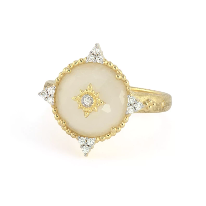 From the Provence Collection, this white moonstone and white diamond tip ring features the JFJ signature brushed finish.