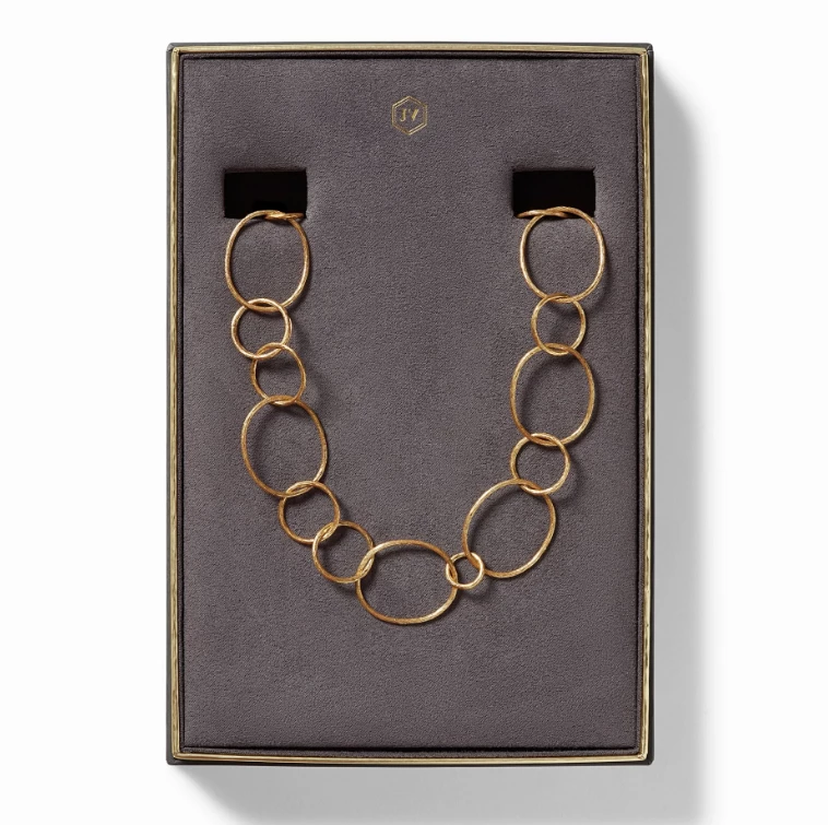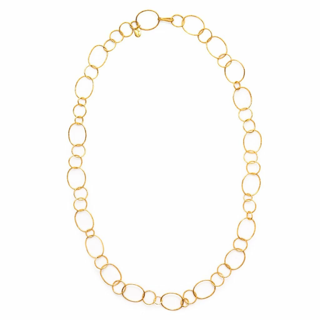Loops of varying sizes with a golden etched finish, perfectly lightweight and delightfully lengthy.
