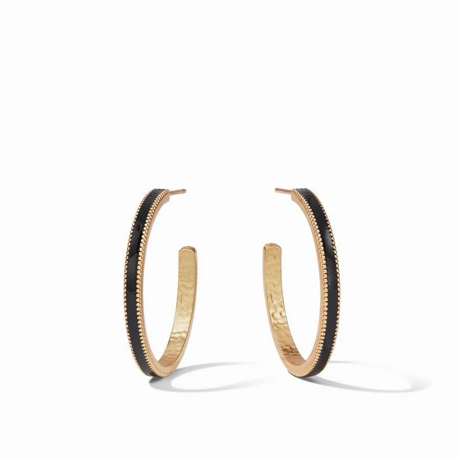 Colorful enamel hoop finished with gold bead detail along its edge.