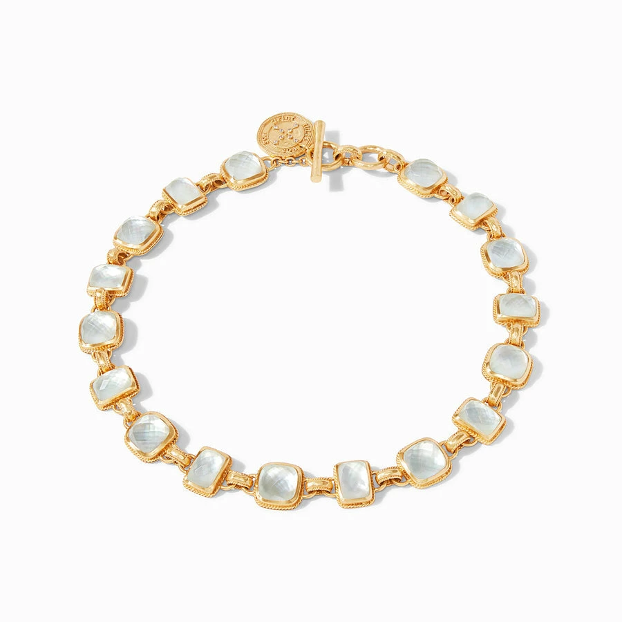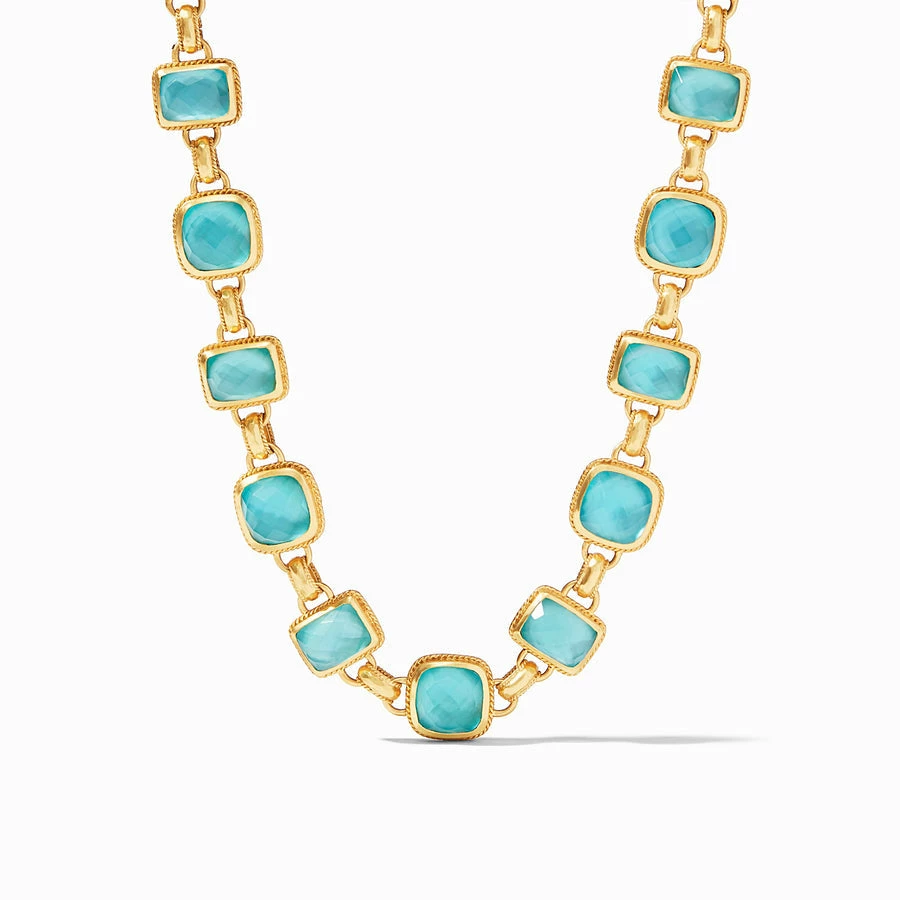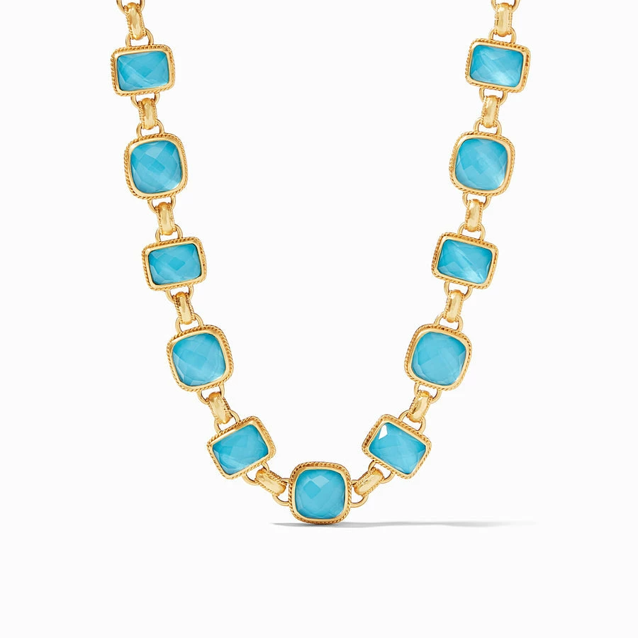 Rose-cut gemstones of radiant hues finished with twisted wire detail. Two toggle rings for adjustable length.