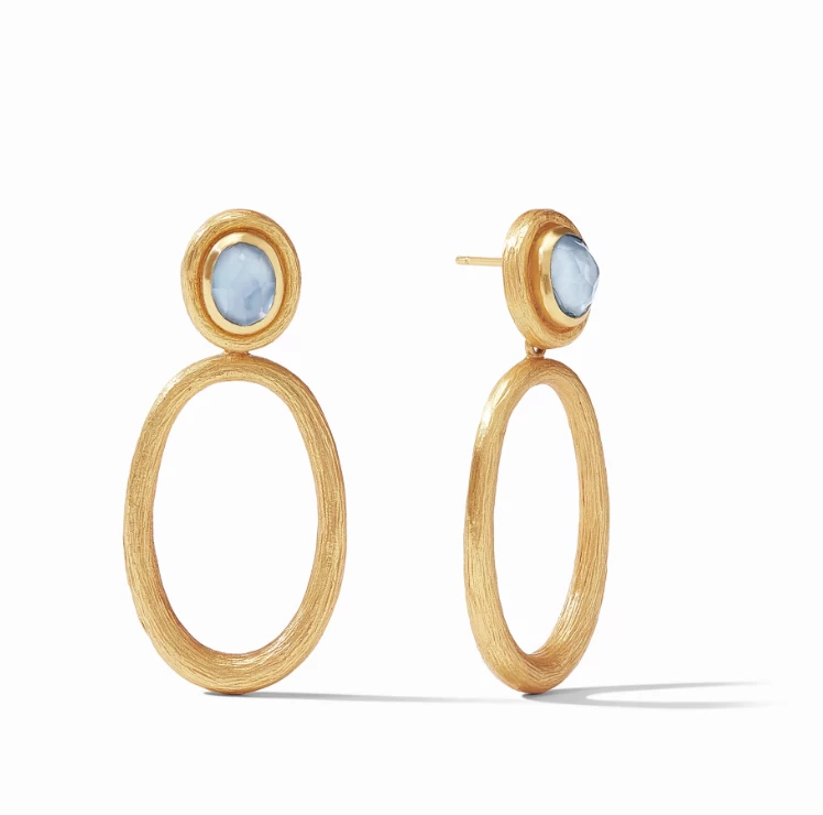 A lightweight statement earring showcasing a sparkling oval top over a delicate hoop.
