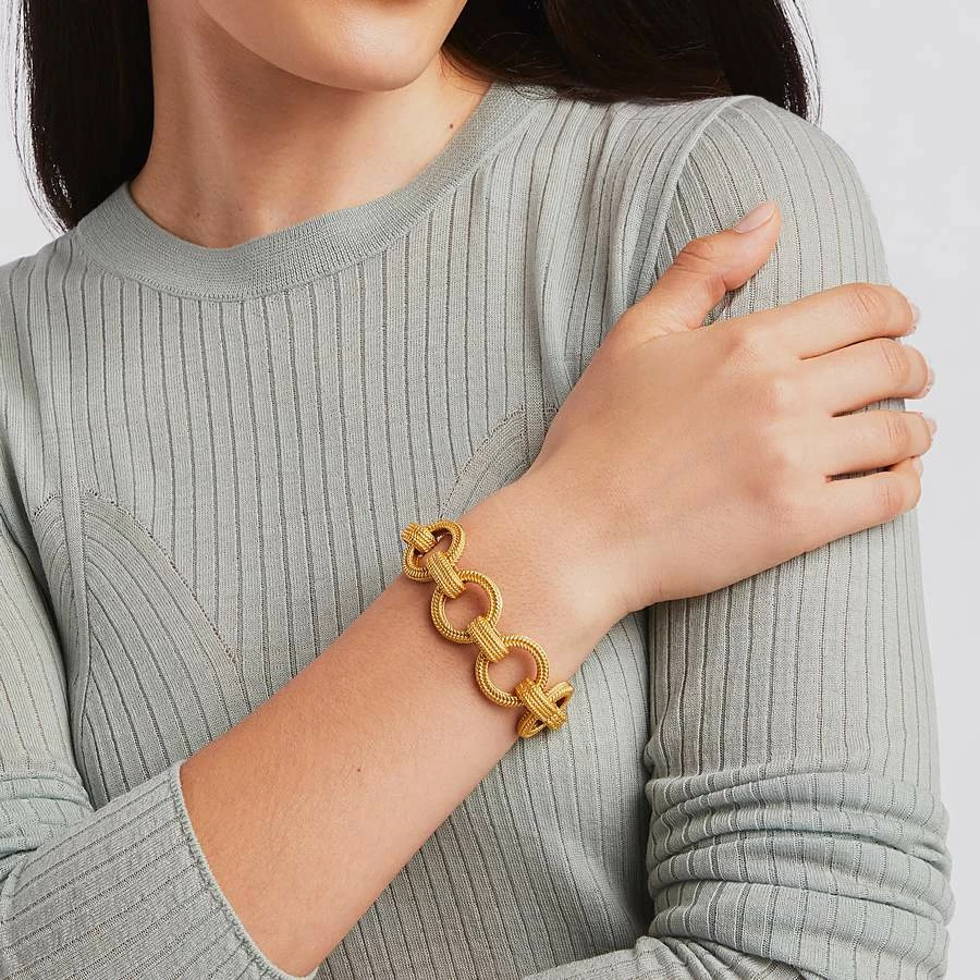 Gilded round statement links decorated with an allover classic chevron detail. Toggle closure.