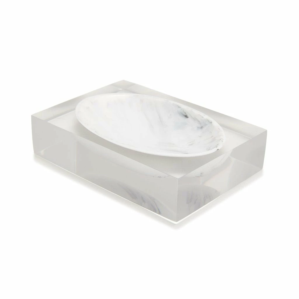 Adorn your spa with these bath accessories. Crafted with ink-injected resin that floats seamlessly in a translucent acrylic encasing, these accessories complete a bathroom that radiates with textural and modern appeal.