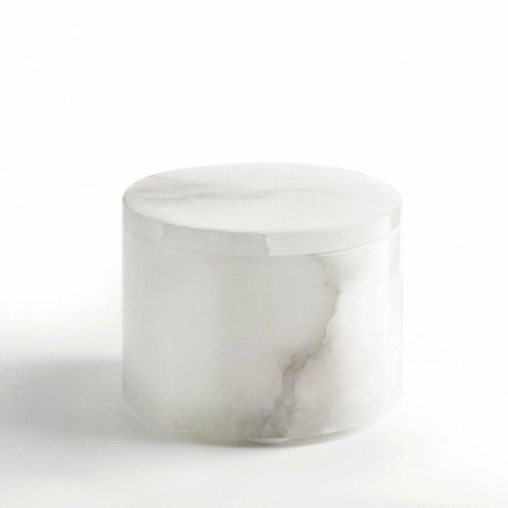 Crafted from luxuriant alabaster, the naturally marbled veining of each distinct collection piece brings artful elegance to the bathroom.
