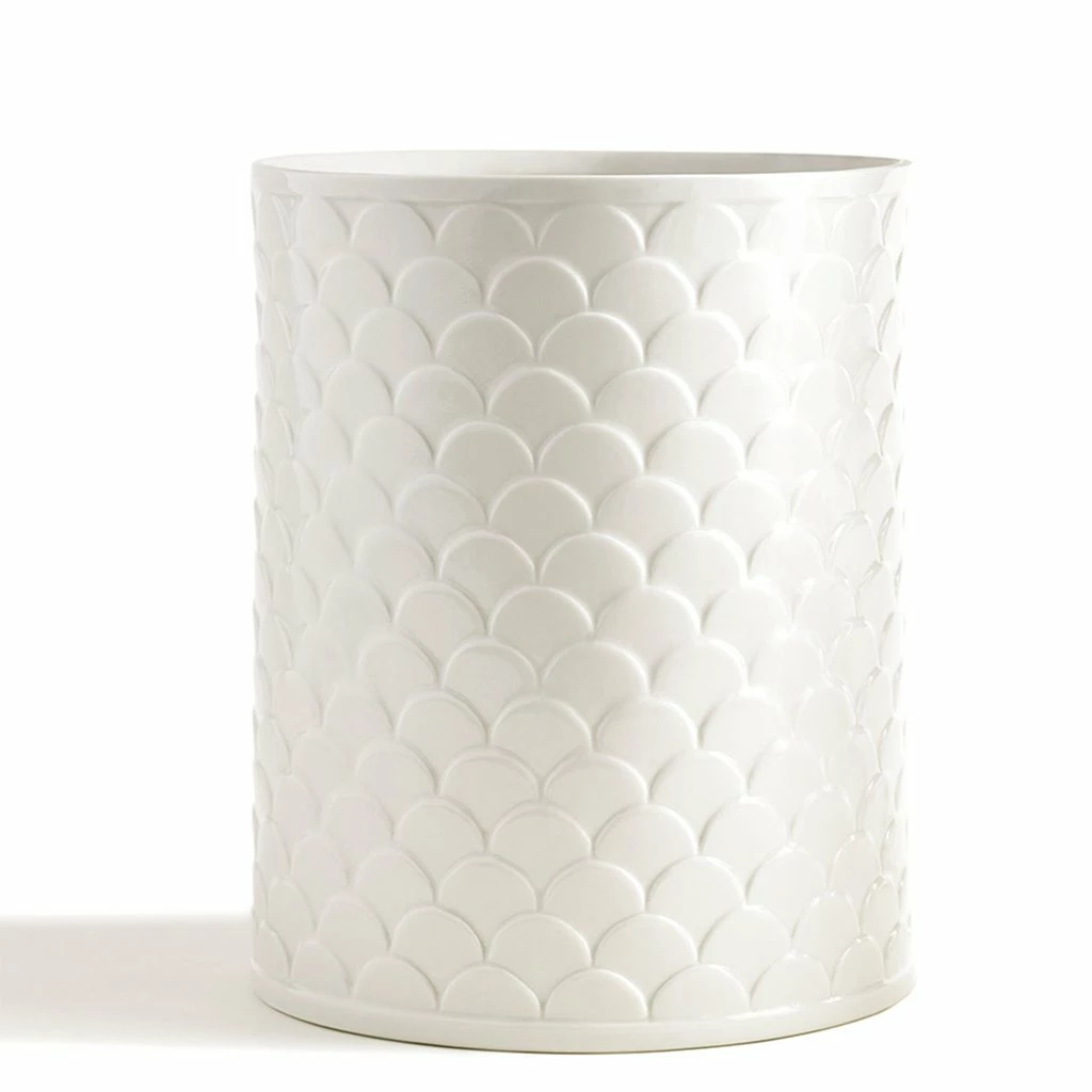 Crafted from finely embossed porcelain, these accessories bring aquatic-inspired style to the bathroom with the elegant scale patterns of each accessory.