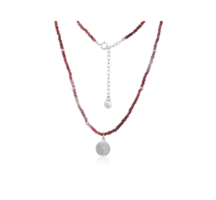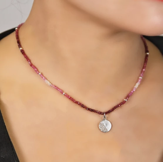 Beautiful strand of Ombre ruby strung together with sterling silver bead.