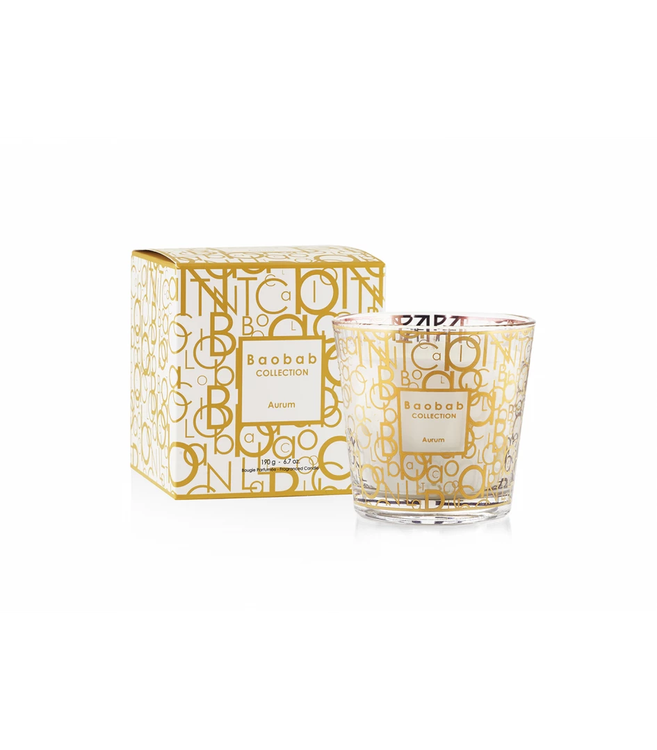 The Aurum scented candle releases one of Baobab Collection’s mythical perfumes with the scent of jasmine and musk.