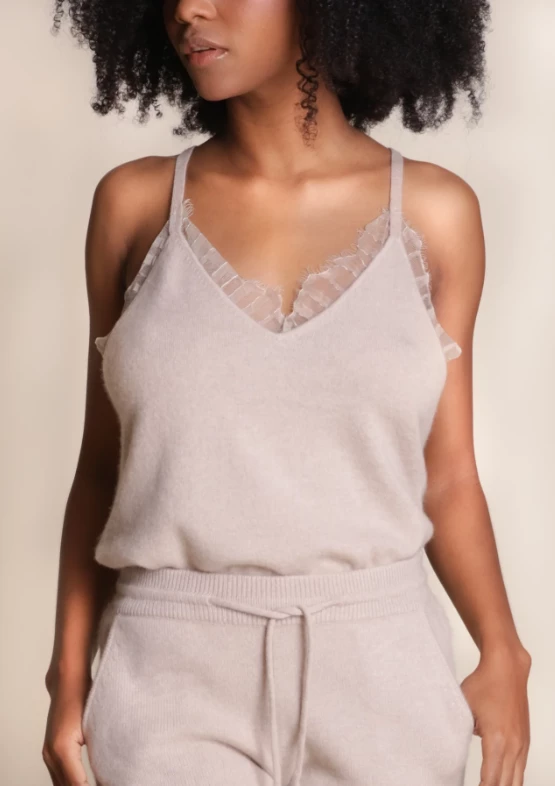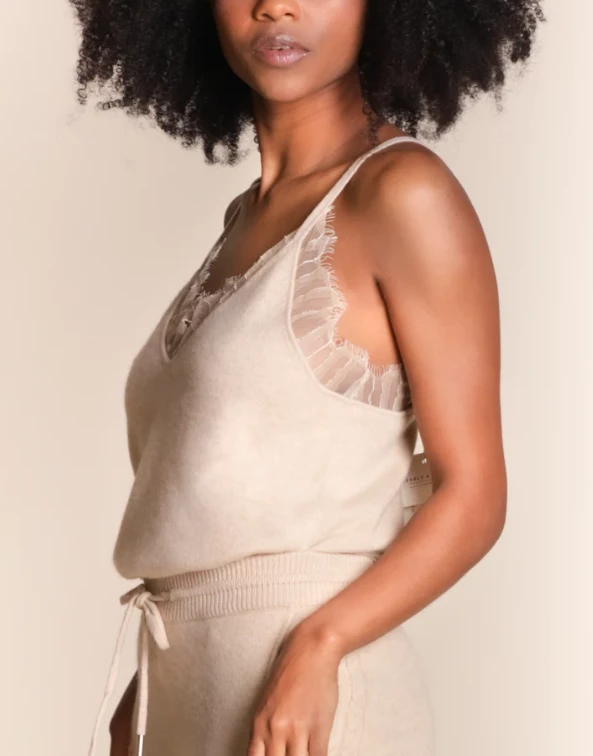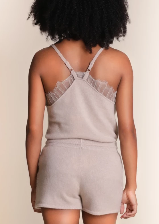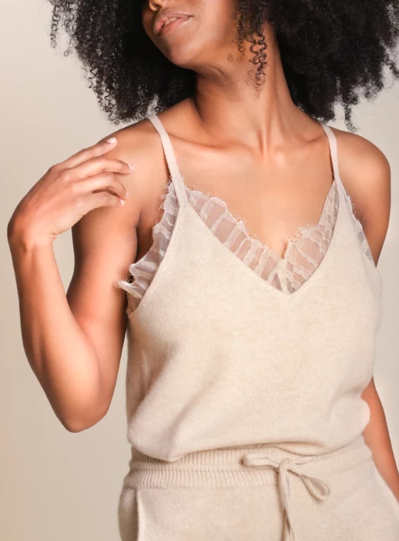 If you were looking for the easiest and most luxurious camisole your search is finally over. The EM camisole is a stunning combination of finely knitted cashmere and delicate but cool scallop lace detailing. We love how the lace along the neckline elevates this everyday luxury basic. Layer under your NEEDLE & PINE cashmere cardigan or with an oversized blazer to give you that cool girl je ne sais quoi.