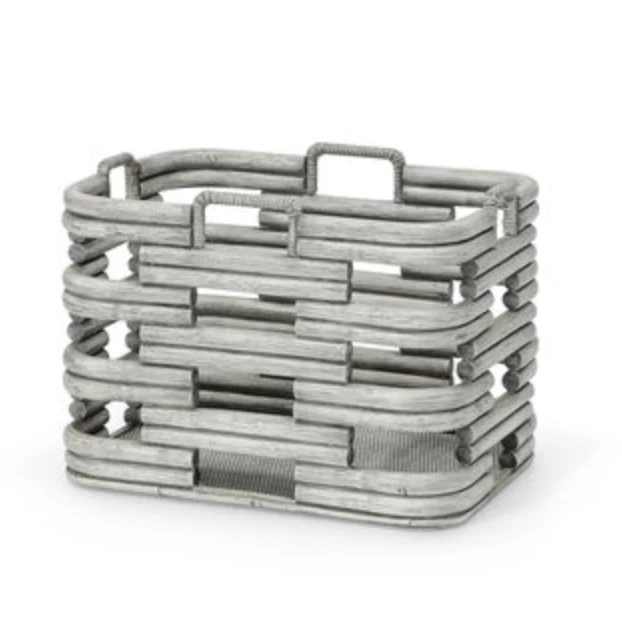 This basket is made from hand-bent pole rattan with a gray wash finish. Great for storing towels, toys, blankets, or anything you’d like!