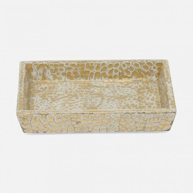 An elegant mosaic of lacquered, cracked eggshell in gold/white.