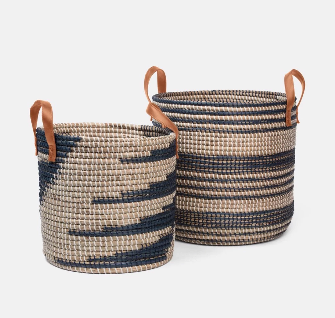 Blue and Natural seagrass baskets are good for shoes, toys, magazines or any thing you like.