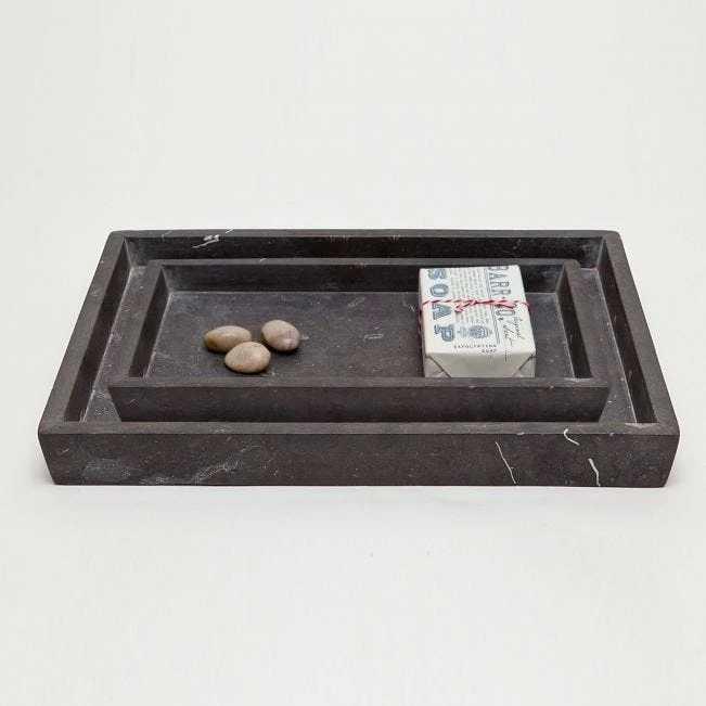 The dark side never looked so good! The bold, black marble of our Luxor collection makes a beautiful statement. The weight and sturdiness of each piece is as impressive as its appearance.