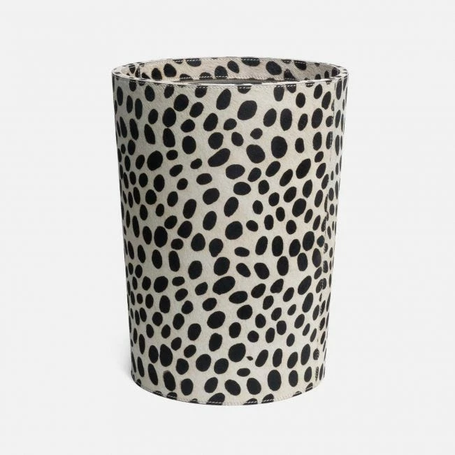 Dalmation print hair on hide waste basket brings style to any room.
