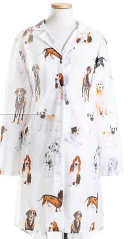 Every dog has its day in our adorable pup-portrait print that covers all the notable breeds of our favorite fur-babies. The artful watercolor rendering of good dogs, happily waiting for you to snuggle up, is digitally printed on crisp white pure cotton percale for superior reproduction. Our comfy, all cotton night shirt has you covered to just above the knee and features a button through placket, notched collar and shirttail curved back.