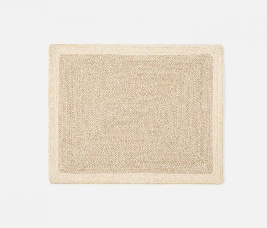Two colors of cotton jute are texturally woven in the Shia placemat, giving it a rustic charm and two-tone aesthetic.