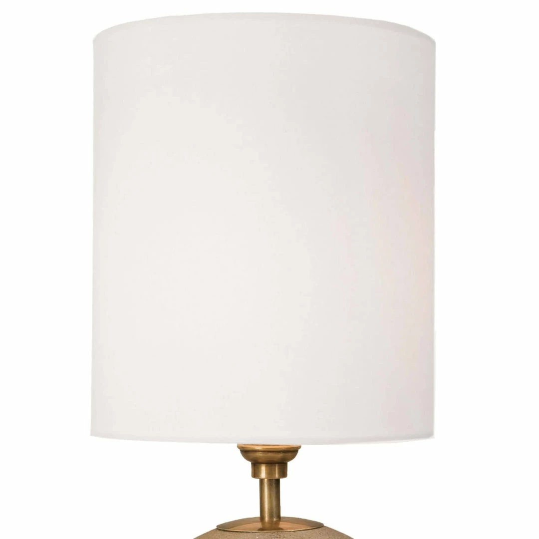 Clean lines and elemental materials lend an iconic quality to this mini lamp. Its orb profile is a timeless, classic shape that spans the centuries. Fitted with natural brass hardware, tall natural linen cylinder shade and topped with a round natural brass finial for a modern industrial look.