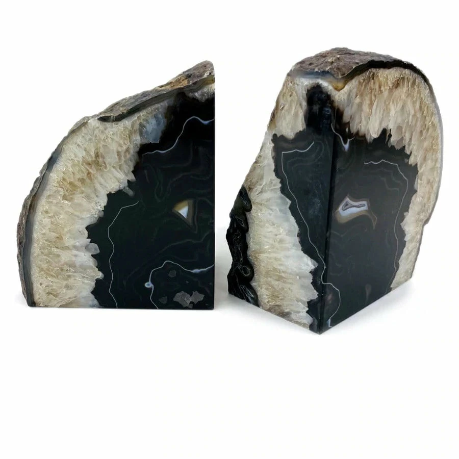 These are beautiful handmade agate bookends! Each bookend is cut, and polished by hand in Brazil from rough agate geodes. Geodes are ancient rocks formed from gas bubbles on past volcanic eruptions or by the dissolution of sedimentary concretions like quicksand over million of years and are known to carry great power within them.